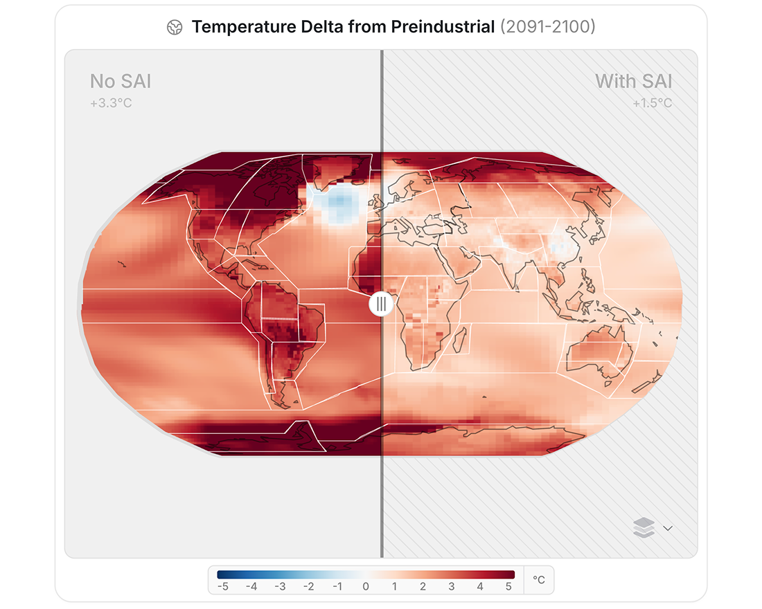 The simulator provides a fast, interactive way to explore the climate effects of different SAI deployment scenarios and compare them to the impacts of continued warming.
